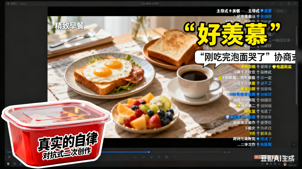 The TikTok’s comments section: One person writes, “I wish my mornings were this calm 😍” (dominant decode). Another says, “Love the vibe, but I’d burn the toast 😂” (negotiated). Someone else screenshots the blurred takeout box, circles it, and reposts with, “Real discipline = eating leftover pizza for breakfast” (oppositional re-encoding).